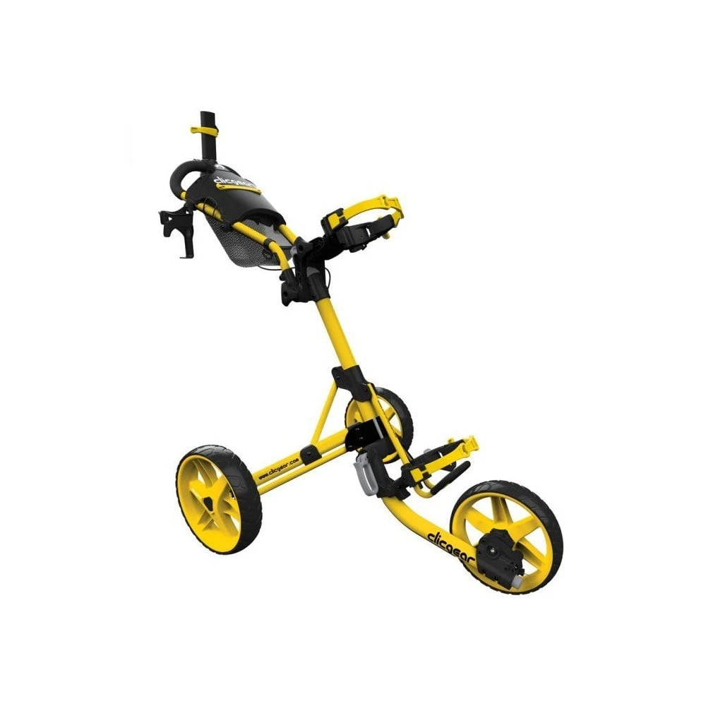 The Clicgear Model 4.0 is the latest update of our very successful three wheel golf pushcart design. We have added several improvements to the original design to make this the best model ever. These include New console lock, adjustable upper saddle, silicone straps, adjustable front wheel, umbrella tube strap, improved scorecard & pencil holder.