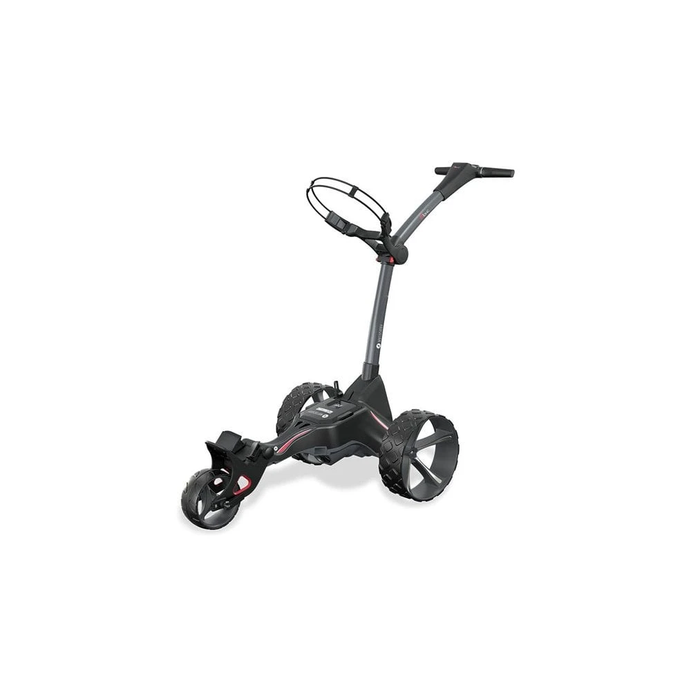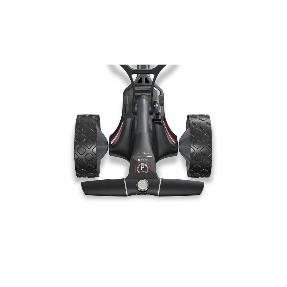 A perfect introduction to our iconic M-Series range, the compact M1 DHC is simple-to-use, without compromising on performance, game-enhancing features, or reliability. The M1 DHC’s latest high-power 28V drive system combines with a whisper-quiet 230W motor, producing unrivalled power and endurance to tackle every type of golf course. Adjustable Distance Control (ADC) technology allows you to set the M1 DHC to travel a specific distance, ideal for sending your trolley to arrive at the next tee box while you walk across the golf course hands-free, and in style. The M1 DHC also features a useful USB charging port to keep your devices topped-up during a round of golf, a stylish new inverting wheel design, and a fully-adjustable handle height. !!<>!!Refined Display!!<>!! The new 2021 M1 DHC Electric Trolley features a redesigned anti-glare LCD widescreen display, offering impressive visibility in all light conditions. The upgraded screen layout provides improved accessibility making the interface easier to navigate, helping you stay focused on the golf. Automatic Downhill Control Allows the trolley to maintain a constant speed when moving down a gradient Electronic parking brake Keeps the trolley stationary on slopes & undulations NEW Slimline all terrain DHC wheels With anti-skid tread to tackle all types of ground with ease Simple, compact-folding system Award-winning M-Series folding technology fits into the smallest car boots Next generation, High Power 28V system More powerful, efficient, & reliable than ever before NEW Anti-glare LCD widescreen display Redesigned interface for improved performance Adjustable Distance Control (up to 45 yards) Set the trolley to travel a selected distance in 15 yard increments Nine-speed settings, Speed indicator & Battery meter Stay in complete control with a quick glance at the handle display USB charging port Ideal for charging any USB powered device while you play Super-lightweight, waterproof Lithium battery IP66 water & dust rating for complete protection against the elements On board battery charging No need to remove the battery for storage, transportation & charging Oversize tubing for ultimate handle stability Thicker frame profile combines with top quality materials for unrivalled performance Innovative inverting wheels Revolutionary space-saving technology – flip the wheels to fit into the tightest spaces Convenient auto-open stand Allows the trolley to stand upright for minimised folded footprint Simple, fully-adjustable handle height Ensures the trolley is optimised for golfers of every height Powerful, whisper-quiet 230W DHC motor Quiet, exceptional performance with power when you need it EASILOCK⢠compatible Securely attach your Motocaddy golf bag without a lower bag strap