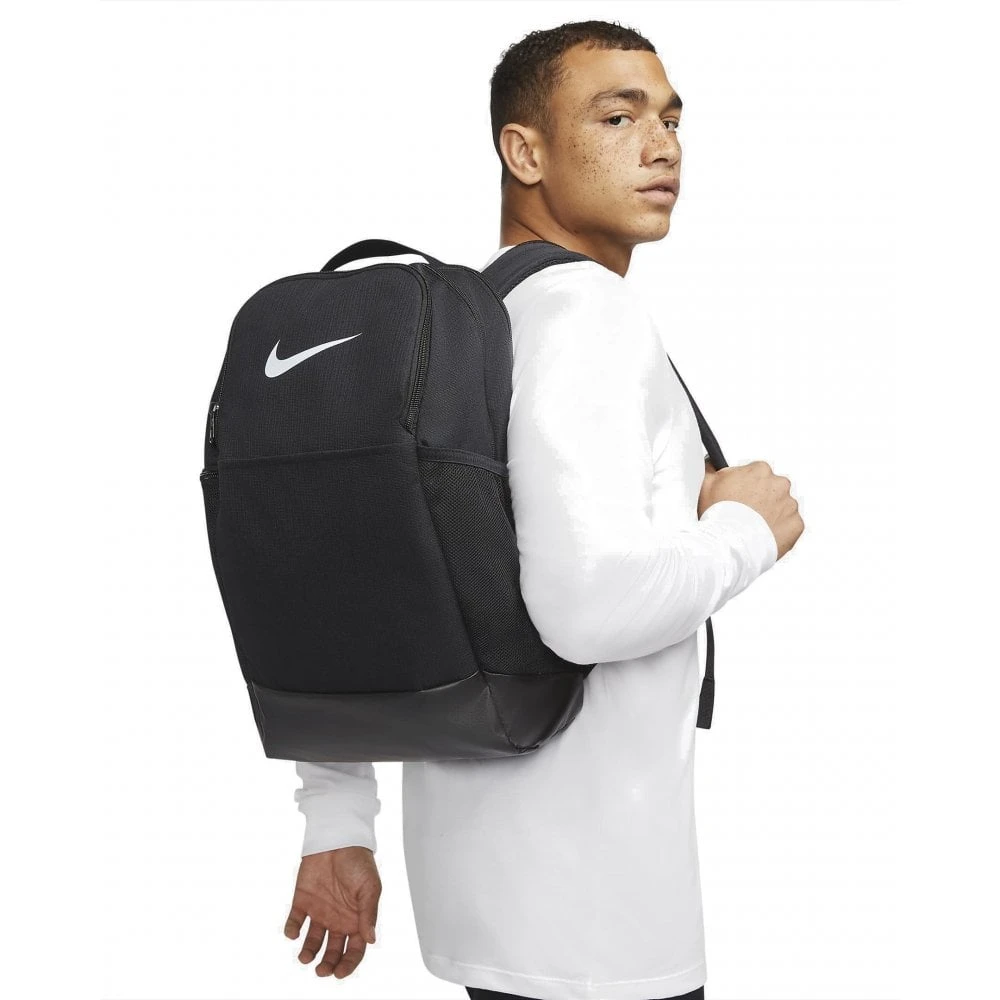 Grab your gear and get going with the Nike Brasilia Backpack. It has plenty of pockets to help you stay organised including a sleeve to fit your laptop, side mesh pockets for water bottles and a zip pocket on the inside to keep small items secure. This product is made from at least 50% recycled polyester fibres.